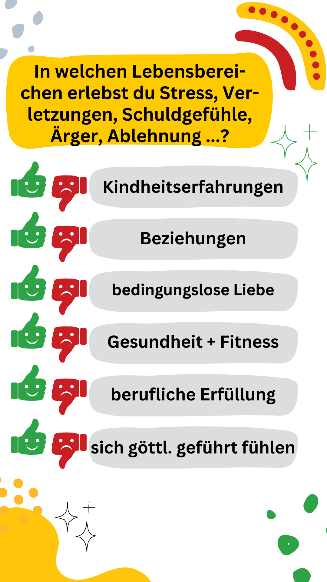 Nach dem Test, weißt du ganz genau, in welchen Lebensbereichen du dich mit deinen Gedanken-Spiralen, Glaubenssätzen, Blockaden etc. selbst im Wege stehst ... und welches Lebensthema du in Harmonie bringen bzw. in die Liebe solltest.