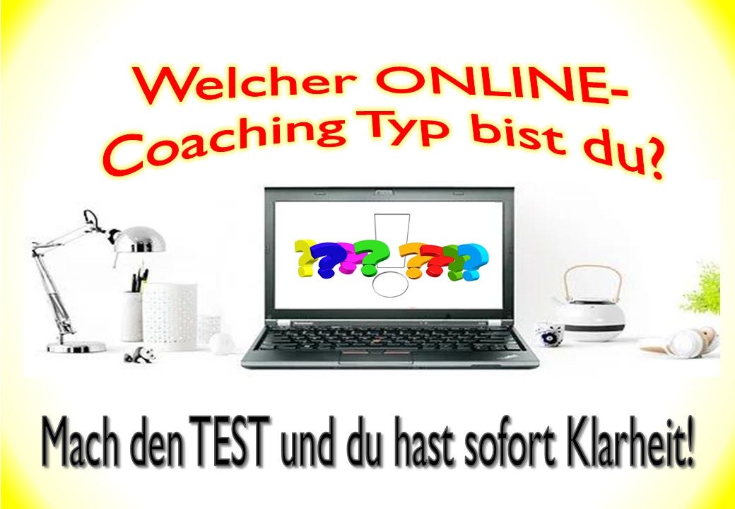 Gerne helfe ich dir bei dem ONLINE-Coaching Typen-Test ... oder gebe dir hierzu Feedback! Schreib mir einfach eine kurze E-Mail an